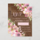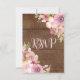 Cartes de mariage RSVP avec motif en bois marron rustique et fleurs sauvages d'aquarelle rose vintage.