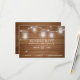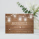 Cette carte RSVP de mariage rustique dispose d'un arrière - plan rustique en bois de grange avec des jarres de maçon brillantes et des lampes à cordes.