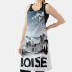 Capture the calm charm of Boise, Idaho with this striking black and white woodcut-style skyline Aprons Set against the snow-capped Boise Foothills, the design features the iconic Idaho State Capitol alongside modern buildings, rendered with crisp contrast and clean lines. A delicate cherry blossom branch dusted with snow adds a unique seasonal touch, while soft gradation creates a peaceful winter atmosphere. , this Boise skyline Aprons makes a thoughtful gift for locals, visitors, and fans of minimalist city and mountain-inspired art.