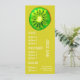 Un modèle de menu coloré et mignon pour un bar à boissons, un bar à jus, une boutique de fruits ou une boutique d'aliments santé. Ce menu mignon a une illustration d'art originale adorable de Sacha Grossel d'une tranche de fruit kiwi avec un thème d'agrumes sur un fond personnalisable vert citron et jaune. Le texte peut être personnalisé pour répondre à vos besoins.