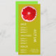Un modèle de menu coloré et mignon pour un bar à boissons, bar à jus, magasin de fruits ou magasin d'aliments santé. Ce menu mignon a une illustration d'art originale adorable de Sacha Grossel d'une tranche de pampleine avec un thème d'agrumes sur un fond personnalisable vert citron et jaune. Le texte peut être personnalisé pour répondre à vos besoins.