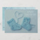Belle photo couleur/couleur pastel d'une paire de bottes de bébé bleu tricoté à la main avec les rubans formant la forme d'un coeur sur un arrière - plan bleu pâle. Parfait pour une faire-part de grossesse pour bébé garçon, une fête de thé pour bébé ou une invitation à la douche. J'ai créé un joli motif bleu pastel et blanc en vichy/coché pour le dos. Le dos est également entièrement personnalisable pour que vous puissiez entrer toutes vos informations en un flash ! Cette carte est disponible en rose pour une fille, en bleu pour un garçon et en turquoise ou en noir et blanc pour une carte d'invitation neutre pour le genre. J'essaie de créer des designs qui sont modernes et originaux mais amusants, mignons et décalés
