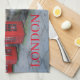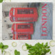 Une belle photo de quelques-unes des fameuses cabines de téléphone rouge de Londres imprimées sur une serviette de thé souvenir.