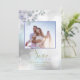 Lilac and Mint Eucalyptus leaves - Your photo in front of a romantic dreamy bokeh champagne and silver background - while a branch of mint green and pale lilac eucalyptus leaves fall over a corner of your photo that sets off your photo beautifully - the background is a bokeh effect in champagne silver and pale dusty blue - - We have created an easy to use template featuring a handwritten calligraphy "Save the Date" that can easily have the colour changed to fit your mood - text is gold and lilac (which can easily be changed to fit your wedding theme by choosing customize further ), additional information offered on the back