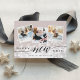 Elegant new year photo card features three square photos in a collage layout, with a bokeh light flare overlay for a festive and bubbly look. "Happy New Year" is overlaid in black script and block lettering, with your name(s) and the year beneath. Cards reverse to a neutral botanical patterned background.