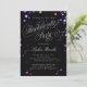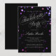 Sparkly bokeh lights shimmer in translucent pink, purple and blue in the background of this darkly glamourous bachelorette party invitation, with simple chic white script and sans serif lettering. Change the text to your own and click "Customize It" to change fonts, and text colour.
