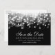 Save the Date postcard featuring white bokeh lights on your choice of background colour.