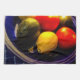 Ajoutez de la couleur à votre monde avec cette serviette de cuisine de ZoeSPEAK, une photo originale de fruit dans un bol bleu cobalt. Quelques citrons, avocats et tomates ajoutent du jaune, du vert et du rouge au mélange, le tout sous une lumière chaude et jaune.