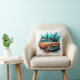 Bold 1958 Car with Skyline and Paint Splash Design Throw Pillow