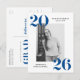 Invite guests to celebrate the grad with our modern Bold 2025 graduation party invitation postcards. The stylish graduation party postcards display the graduate's photo framed in white with 2025 in bold blue lettering at the top left and bottom right corners. Personalize the front of the photo graduation party invites by adding the graduate's name & school name. The postcard reverses to display your return address and graduation party details.