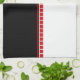 A bold abstract design of a split black and white area with a row of red squares creating a vibrant modern design.
