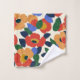 A vibrant and bold abstract floral design featuring large red, orange, and blue flowers with green and navy leaves on a cream background. The playful shapes and bright colours create a modern, artistic aesthetic perfect for textiles, wallpapers, or decorative prints.