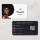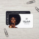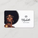 This chic business card features a powerful Melanin Chic Afro American woman with a stunning afro, accentuated by glamourous gold lipstick and nails. Perfect for hair and nail salons, this design effortlessly combines luxury and empowerment with sleek black and gold tones, making it ideal for salon professionals who want to leave a lasting impression. Elevate your brand with this sophisticated and eye-catching card that embodies beauty, strength, and style.