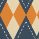 Bold argyle diamond geometric pattern in orange and beige and dusty blue with Sashiko style stitch detail. Modern and bold pattern perfect for accent walls. Peel and stick wallpaper lets you upgrade your small space home decor and personalize your rental with your unique design aesthetic. No more boring white boxes!