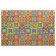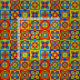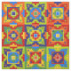 This fun fabric features a bold mosaic tile pattern in bright shades of reds, blues, greens and yellows.