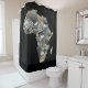 Elevate your bathroom decor with the Bold and Elegant Shower Curtain, featuring an Embossed Silver and Gold Africa Silhouette Motif Graphic on a rich black background. This design makes a striking statement, blending Afrocentric artistry with sophisticated style. Crafted from 100% durable polyester, it offers vivid full-colour printing, stitch-enforced eyelets for easy hanging, and effortless machine washability. Perfect for those who appreciate elegance and cultural flair in their living spaces.