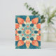 Coral blooms in minimalist forms stretch over peacock blue, adding richness and energy to any space.