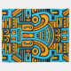 A bold and vibrant geometric wall art design inspired by tribal and abstract motifs. The artwork features striking shades of turquoise blue, golden yellow, and deep black, arranged in a symmetrical pattern that feels both modern and timeless.