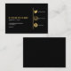 A sophisticated business card featuring a matte black background with elegant gold accents and minimalist typography. The left side highlights your business or name in bold gold uppercase letters, with your company or profession in subtle white below. Contact details are neatly arranged in a crisp sans-serif font for easy readability. A vertical gold line divides the layout, drawing attention to three gold social media icons and space for your handles. This design combines luxury and clarity, making it ideal for entrepreneurs, creatives, and professionals seeking a memorable, contemporary brand identity.