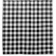 Add a stylish accent to your bathroom with a custom shower curtain featuring black, white, and grey squares in a bold buffalo plaid.