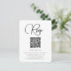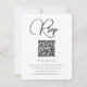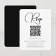 This modern wedding response card features a place for your QR code so that guests can easily rsvp on your wedding website. The front features a simple and clean black and white design with trendy lettering script typography. The minimal back is solid black.