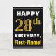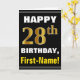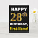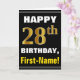 Bold, Black, Faux Gold 28th Birthday w/ Name Card