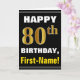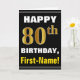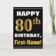 Bold, Black, Faux Gold 80th Birthday w/ Name Card