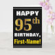 Bold, Black, Faux Gold 95th Birthday w/ Name Card
