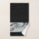 Black Towel with Bold Black Gold & White Abstract Border (White back)
