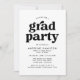 Stylish graduation party invites featuring "grad party" displayed in bold black lettering with the graduate's name and party details shown below. The simple graduation party invites are perfect for both high school and college graduates.