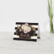 This chic bridal shower thank you card matches the bridal shower invitation collection shown below and features a wide horizontal stripes pattern in black and ivory with a decorative black bracket-shaped text box in black with two outer gold edges. There is a colourful floral bouquet at the top centre and lower right of the text area inside that has lovely roses in cream, ivory, and pink, with orange Peruvian lilies and green foliage. The inside of the card is ivory and has small top and bottom borders in black with strips of simulated gold across the card width. You can customize the thank you message to add your own verse or other text or delete the template text to leave the card blank to handwrite in instead. It's a perfect way to wrap up your bridal or wedding shower, or other wedding-related event.