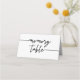 Memory table tented card for a funeral or memorial service in a black and white design with a bold script. White memory table card with a black script.