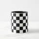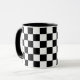 Stylish mug features a bold black and white chequered pattern made of rows of alternating white and black squares like on a racing flag. The mug has a black handle and interior which you can customize in the sidebar.
