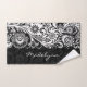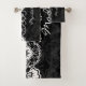 Bold Black White Floral Design Bath Towels Set with optional personalization on each piece.