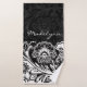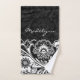 Bold Black White Floral Design Bath Towels Set with optional personalization on each piece.