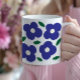 Bold Blue Abstract Retro Flower Pattern Coffee Mug