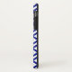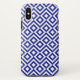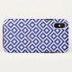 Protect your iPhone X with an impact resistant Case-Mate Tough case featuring a bold blue and white geometric pattern. The ornamental design has white meanders which angle around blue diamonds containing white diamonds. Blue zigzags provide subtle separation between the winding paths.