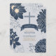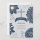 Illustrated floral accents in deep slate blue hues sprinkle across this boyishly handsome Baptism invitation against a pale blue background.