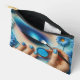 This makeup pouch is adorned with a modern blue eye makeup design. Eye shadow and blue nails with some fun floral elements make this a fun cosmetic bag to hold your makeup items. Jump on the blue makeup trend. Various sizes available.