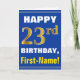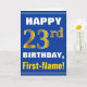 Bold, Blue, Faux Gold 23rd Birthday w/ Name Card