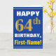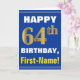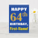 Bold, Blue, Faux Gold 64th Birthday w/ Name Card