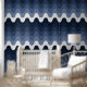 Bold Blue Gradient Wavy Horizontal Stripe Pattern Wallpaper