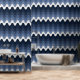 Bold retro white and blue gradient wavy horizontal stripe pattern wallpaper. Removable peel and stick wallpaper is perfect for apartments, rentals, short term housing, accent walls, and focal points. Peel and stick wallpaper lets you upgrade your small space home decor and personalize your flat with your unique design aesthetic in a landlord friendly way. No more boring white boxes! ** Textured wallpaper works best with textured walls. **
