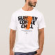 A sleek black and orange minimalist coffee quote t-shirt featuring a striking halftone illustration design. Clean lines, bold contrast, and modern typography make this tee perfect for coffee lovers who enjoy a stylish, contemporary aesthetic with a creative edge.