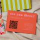 This vibrant and playful QR code RSVP wedding enclosure card features a burst of colour! Fun bright pink fonts on a cheerful red background make this a joy to add to your invitation suite. The QR code makes replying a breeze. Turn it over to another fun surprise - green and blue stripes on the backside. Pair with the Blooming Joy wedding invitation collection.