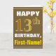 Bold, Brown, Faux Gold 13th Birthday w/ Name Card