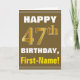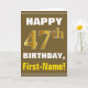 Bold, Brown, Faux Gold 47th Birthday w/ Name Card