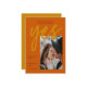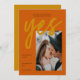 A modern Save the Date Card with a fresh and bold colour palette of burnt orange and ochre, featuring big bold Calligraphy Script for Yes and your image of choice. All colours of this Photo Save the Date Template can be changed! A unique but affordable Save the Date Invitation for modern couples.