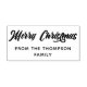 Merry Christmas rubber stamp with Merry Christmas written in a bold calligraphy script. Add your family name or return address.