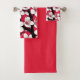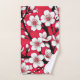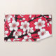 A striking digital floral artwork featuring crisp white cherry blossoms on a vivid red background. This high-contrast design brings drama and beauty to any modern decor